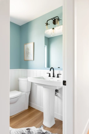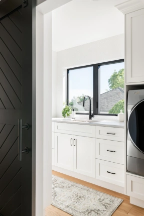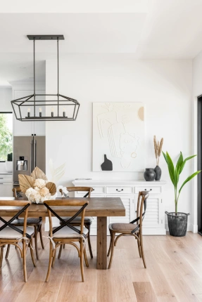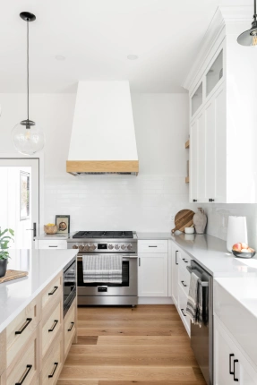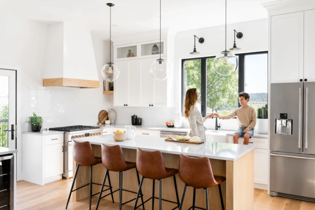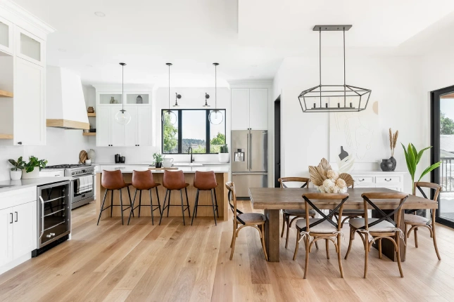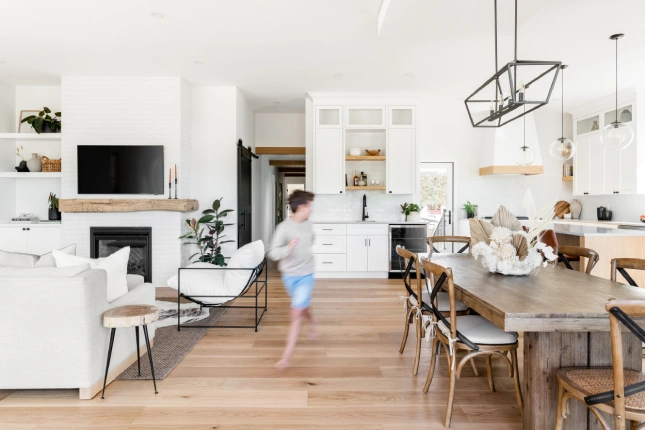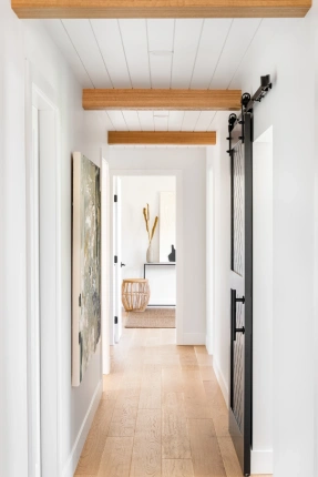 • Modern Farmhouse Finishes: A mix of classic and contemporary materials, including wide-plank wood flooring, shiplap walls, black metal accents, and matte white surfaces, brings a fresh, modern twist to the farmhouse style.