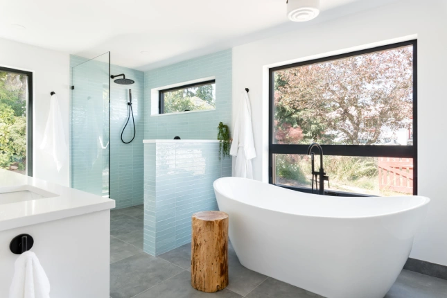 • Higher Ceilings and Natural Light: Low ceilings were raised where possible, and new, larger windows were installed to flood the home with natural light. Skylights and transoms further brighten the interiors, creating an airy, welcoming atmosphere.