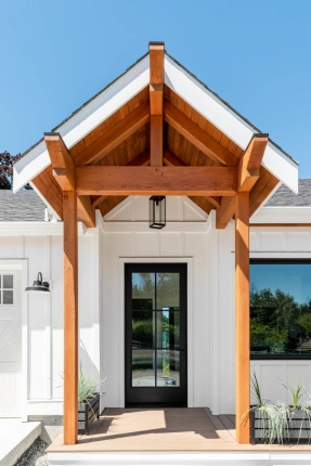 • Preserving Original Charm: Signature details from the original farmhouse, such as exposed beams, vintage trim, and the classic gabled roofline, were thoughtfully restored or replicated to maintain the home’s authentic character.